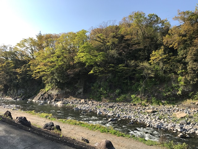 川沿いを彩っていた花桃の花が終ってから後、今は山桜が満開に咲いていました。