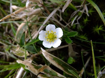 牛奥ノ雁ヶ腹摺山山頂に咲くシロバナヘビイチゴ