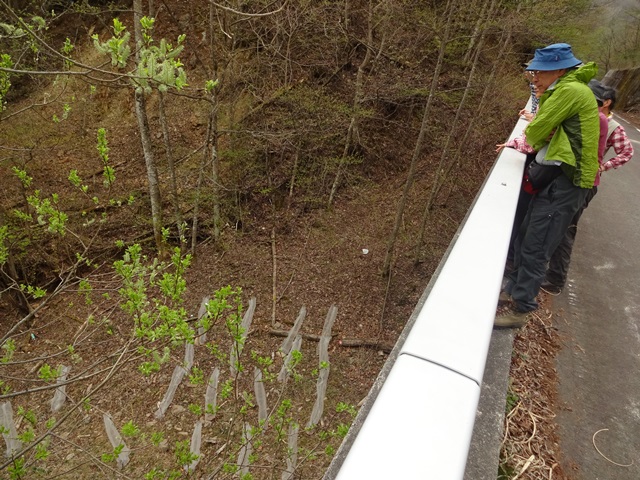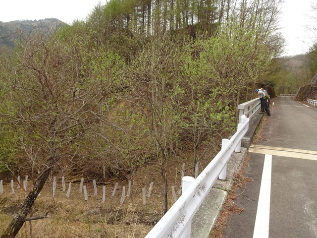 ここから先はゲートのカギを開けていただき、いよいよ秘境への入り口突破。 途中車を降りて、シオジの植林がされている場所を見学。 食害に合わないようにネットで保護されています。