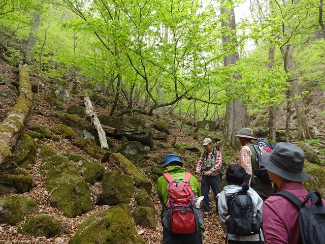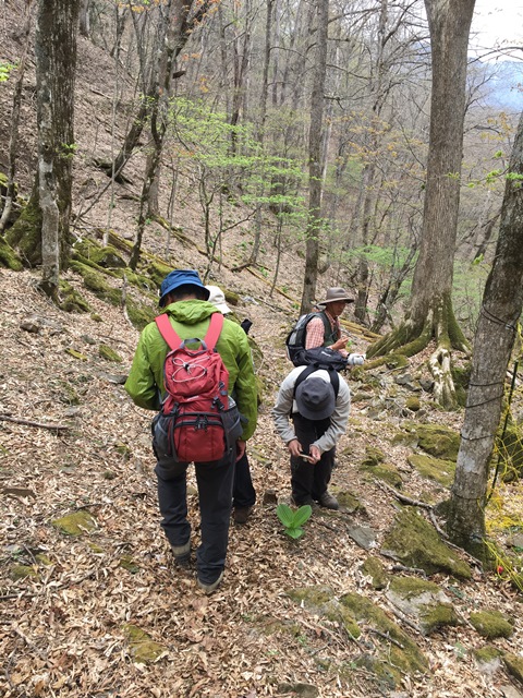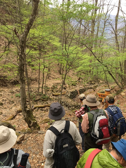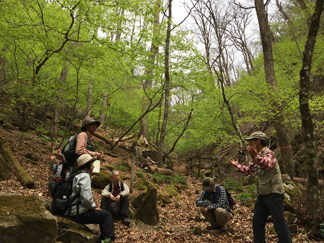2017年5月9日(火)大峠から先は年間を通してゲートが閉まっており 入ることのできないシオジの森へのゲートを開けていただき シオジの森の学校の下澤先生の案内の下行われたツアーに同行してきました。 心配だった天候でしたが、曇りながらも富士山もしっかり姿を現してくれて 新緑も美しい、とても楽しいツアーとなりました。 当日は大月の駅からジャンボタクシーに乗り、車中から下澤先生の案内つき。 大峠までの道は、まさに緑のトンネルでした。