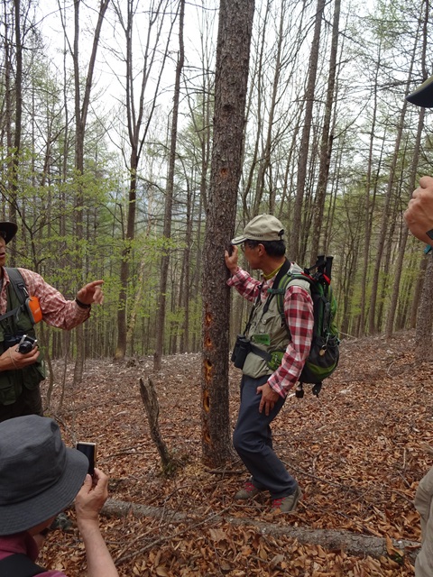 途中ミツバツツジの咲く道を、足を止めては見入り 写真を撮りながら歩きます。 参加者さんは、鳥に詳しい方や植物に詳しい方もいらっしゃって 話しに花が咲きとても楽しい時間♪