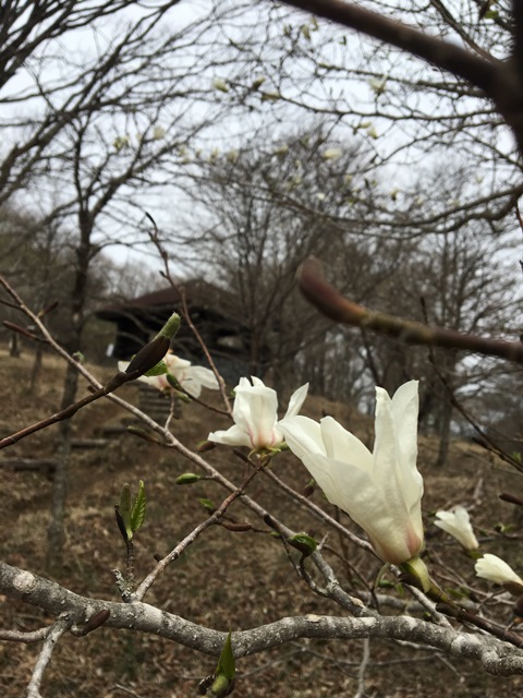標高1561mの大峠はまだ初春。 緑の芽吹きはなく、こぶしが咲き始めたところです。