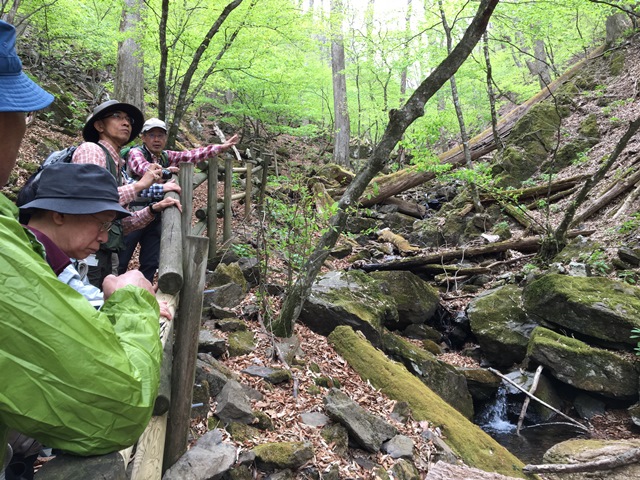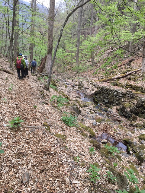途中右岸から左岸へ。このあたりはかつてわさび田を営んでいた方がいたそうで その名残が残っています。