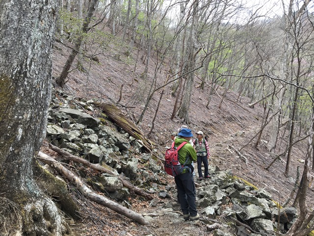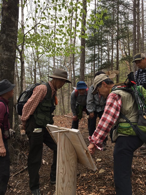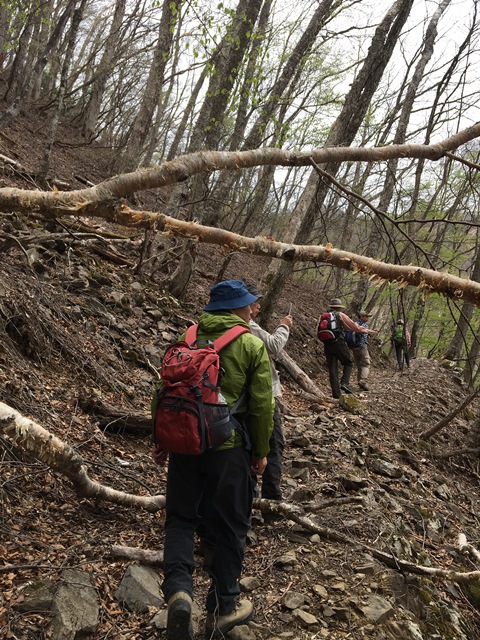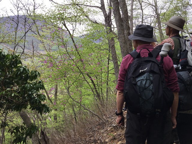 このあとお弁当広場(大樺ノ頭分岐)でお弁当を広げ早めのランチ。 腹ごしらえをした後は道標で確認をして トウゴクミツバツツジの群生地がある長沢分岐方面に向かって出発。