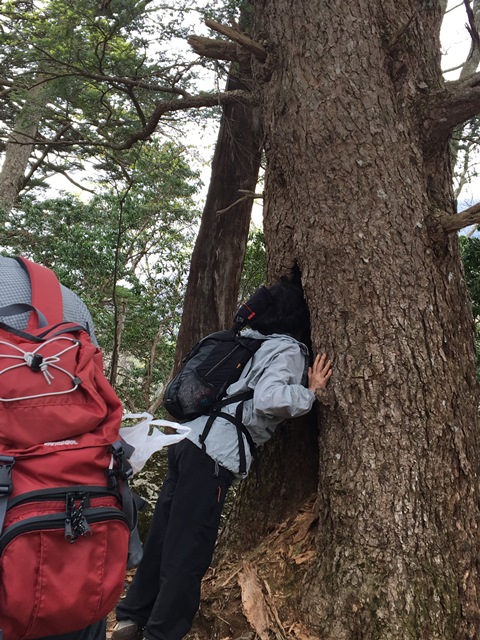 下りの途中でこの森の中で一番の巨木のシオジの木が。