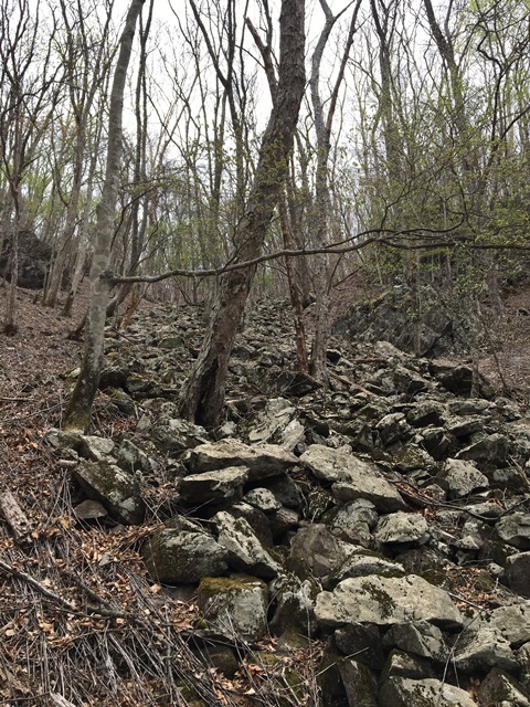 途中の上から砕かれた岩が川の様に帯になっていた箇所があり 何億年も前は海の底であったという地球