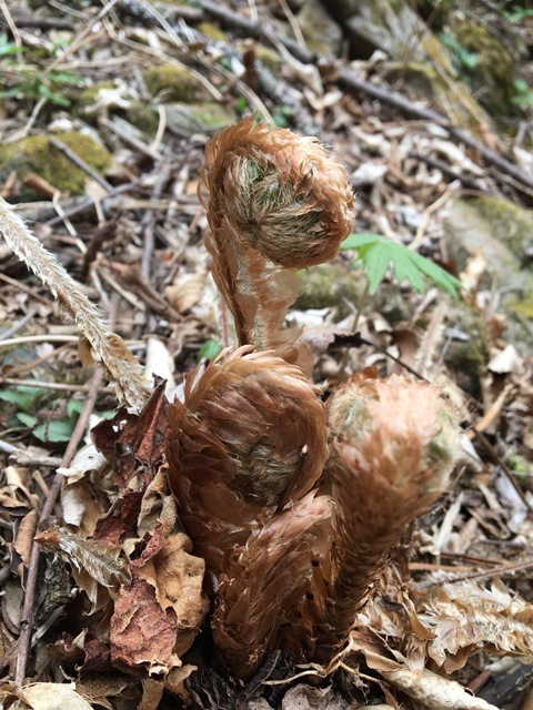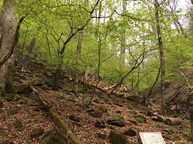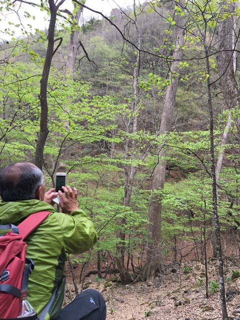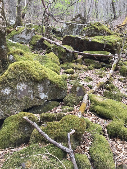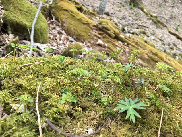 標高が上がってきたので森の入り口とは緑の様子が違います。