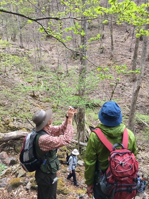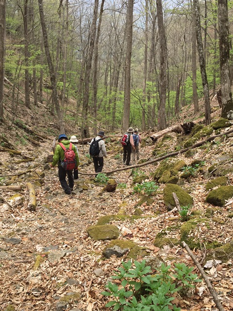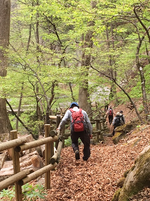 入口から緑のシャワー。 下澤先生の興味深いお話を聞きながらゆっくり登って行きます。