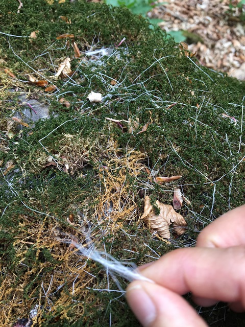 岩の上の苔の上に白い動物??の毛をたくさん発見!!!