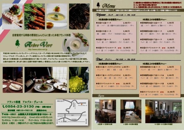 宮谷の高台にあるフランス料理「アルブルヴェール」からおすすめ料理のご案内です。