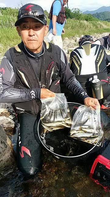 2017年の鮎釣りの解禁日、釣果のご報告を頂きました。 大月市内の皮は県内外の大性の鮎釣りファンの皆さんが訪れ賑わいました。 写真は葛野川より。 前日から、静岡からいらっしゃってお仲間4人で徹夜。 1日で86匹を釣り上げた上田様です。 「桂川最高!」のお言葉を頂きました。 今週末は天気予報もいいので、また多くのお客様がいらっしゃって下さるでしょう。 皆様も投稿をお待ちしています(*^^)v