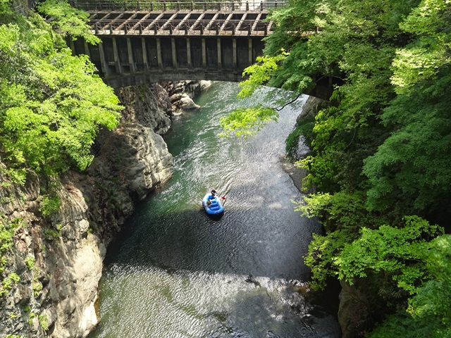 日本三奇橋の猿橋の下をボートで遊覧する「猿橋遊覧」は