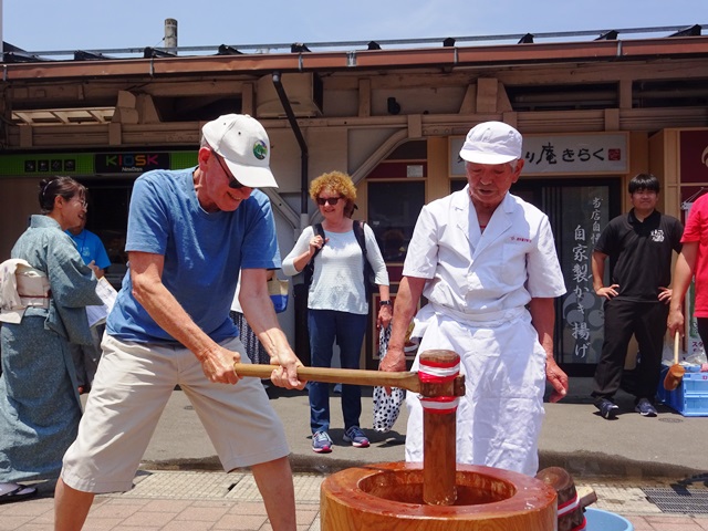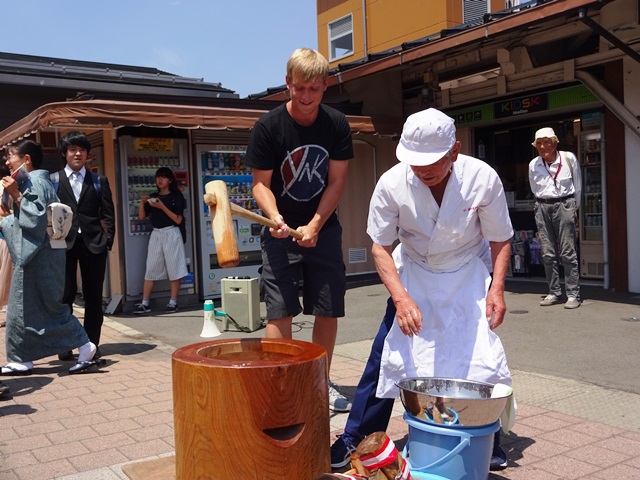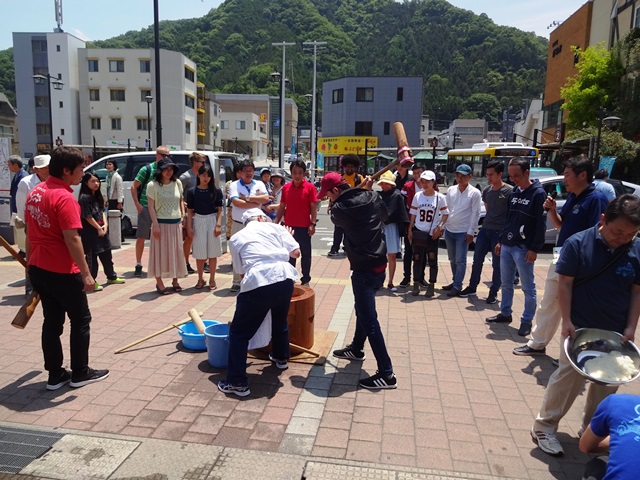 お天気にも恵まれ、大勢の観光客の皆さんも餅つきに参加してくれました。