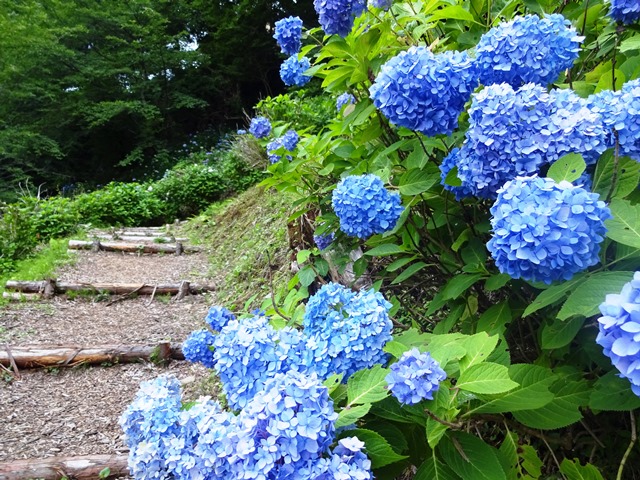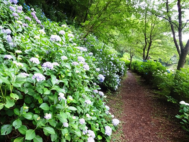 ここに来て一段と色好きを増した紫陽花が遊歩道を彩り、とっても綺麗です。