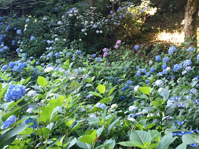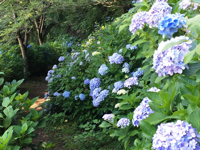 花が遅れていた猿橋の遊歩道沿いのあじさいも 7月11日現在