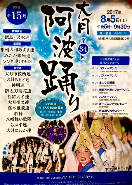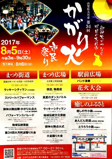いよいよ明日となった大月市最大の祭り 「第34回かがり火市民祭り」 こちらのチラシはどこで何が行われているかが 大変分かりやすく表記されています。 こちら表側