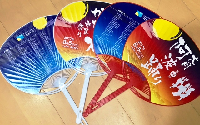 明日は大月駅前の観光案内所でこちらの団扇を無料で 配布いたします。