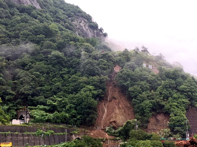 大月市では8月7日の午後、3時間当たりの雨量が215.5ミリと平年の8月1か月の雨量と 同じくらいの激しい雨となりました。 1日経って、JRの通常運転、高速道路の開通と交通マヒは解除されつつありますが 市内の各所で土砂崩れが起こっており、通行止めになっている箇所が多数発生しているようです。 以下、大月市の 8時前に放送された防災大月の内容です。 「市役所から、交通情報について、お知らせします。 中央道下り大月JCTから大月ICまでの間で通行できません。 国道20号については、大月バイパスが通行止めですが、迂回して通行することが可能です。 国道139号については、高月橋から畑倉地内神宮橋までの間で通行できません。 また、七保出張所付近において通行できません。 県道金山大月線については、賑岡町浅利地内サンコート大月付近において通行止めとなっています。 県道小和田猿橋線については、七保町葛野地内甲陽生コン付近において通行止めとなっています。 (こちらは午前9時に通行止めが解除されました) JR中央線は、始発からほぼ平常運転しています。 富士急行線についても、始発からほぼ平常運転しています。 富士急山梨バスについては、通行止め区間を除いて通常に運行しています。」 また、大月駅から見えるトレッキングでも人気の山「岩殿山」は 被害が大きく当分の間入山禁止となりました。