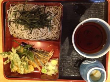 こちらは季節の山菜など盛り込まれた天ざるそば(この日はウドの葉のてんぷらでした)