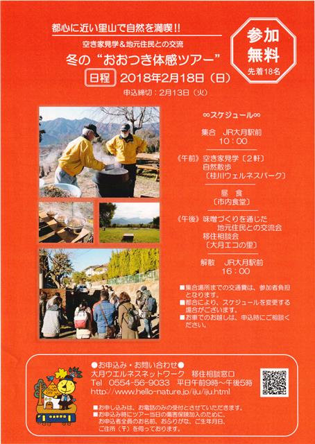 お申込みお問い合わせは→大月ウエルネスネットワーク 移住相談窓口(055-5-9033)まで。