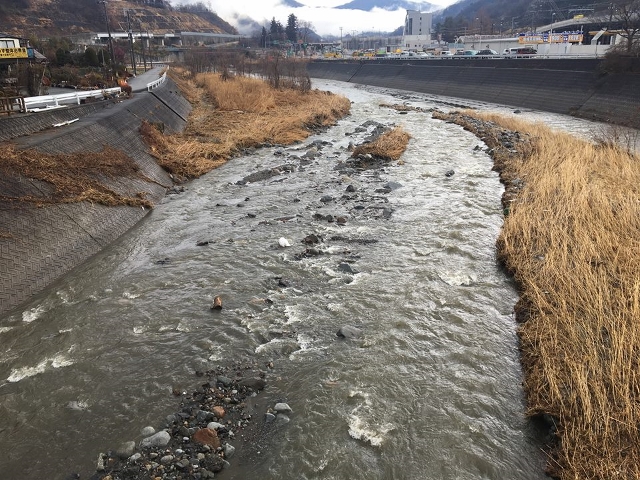 また、こちらは大月東中学校そばの新浅利橋の上から。