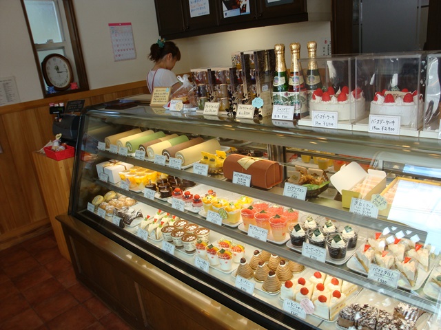 店内には色とりどりの美味しい洋菓子が沢山並んでいます。好きなお菓子をお選びください。