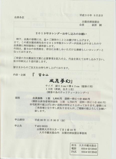 ●2019年版カレンダー斡旋のお知らせ