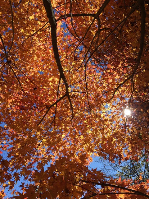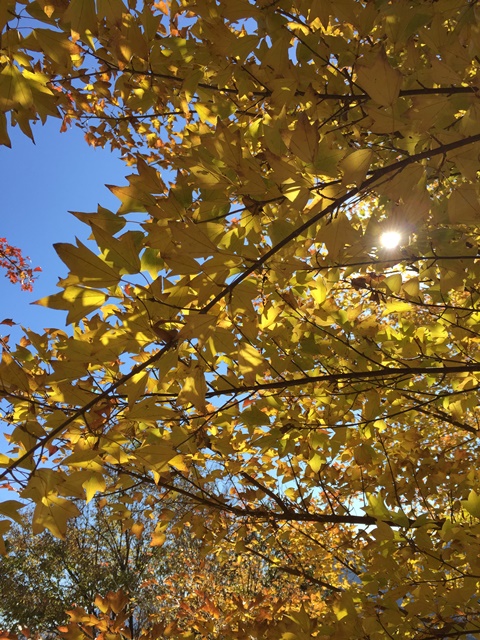 11月22日 猿橋のまわりでは最後まで色付いている木です。