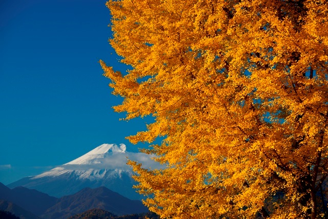 秀麗富嶽十二景で19山ある山々は標高の高い小金沢山(2014m)~真木お伊勢山(600m)まであり、また市街地では標高約300mの猿橋やその周辺の桂川を取り巻く渓谷美に至るまで、1か月半ほどかけて紅葉前線が下りてきます。朝晩の気温が低くなってきたことで、急に山の木々の色が変化してきているように感じます。