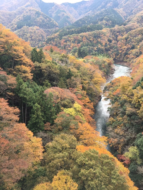 渓谷の紅葉。こちらは標高288mあたりになります。2017年の11月14日の様子です。