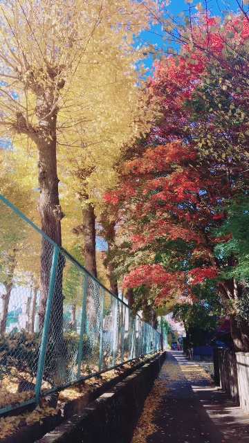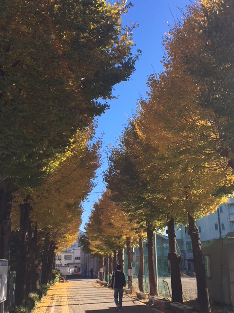 こちらが大月駅から歩いて行ける隠れスポット、大月短期大学のイチョウ並木とその周辺です。2017年11月12日の様子。