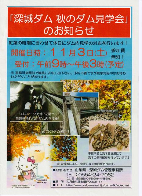 紅葉狩りにお越しの際には是非深城ダム秋の見学会に足を運んでみてはいかがですか。