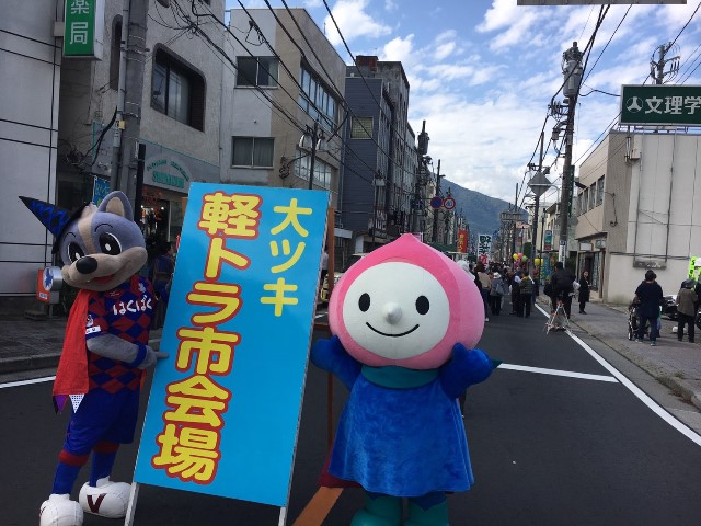 10月20日(土)青空の下、国道20号大月駅前信号~大月市役所までを歩行者天国にして午前10時より『第8回大ツキ軽トラ市』が開催しました。お天気も良かったので開始と同時に大変多くのお客様がお越しくださり会場は大賑わいとなりました。