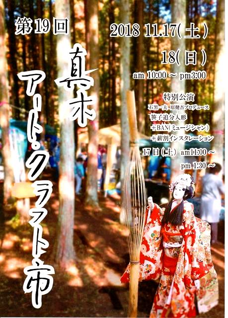 今週末11月17日(土)18日(日)の2日間、真木のアートクラフト市が開催されます。毎年楽しみにしている方も多い人気のクラフト市です。(写真は過去のものです)森の中の会場には40軒の店舗が並びます。
