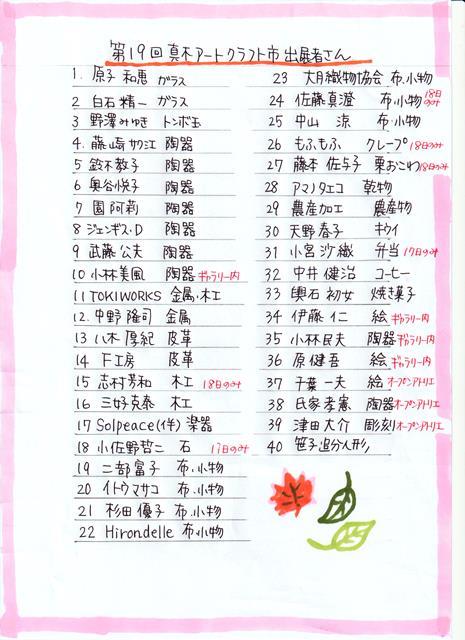 こちらは出店者一覧です。1日だけ参加の方もいるようですので、ご注意を!!