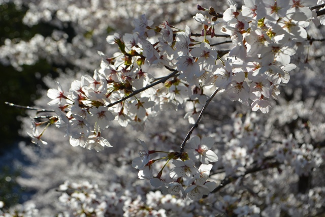ソメイヨシノは満開で、風に吹かれてそろそろ花吹雪になりつつありました。日に透けてとても美しかったです。