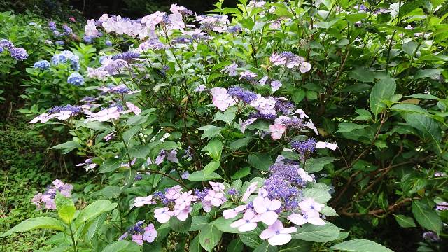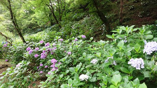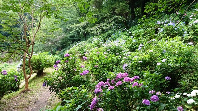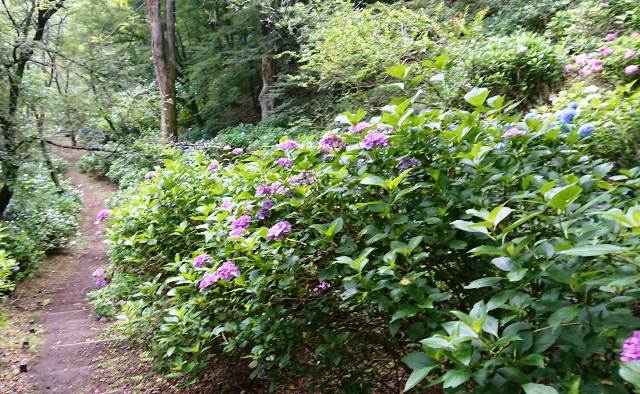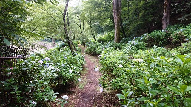 7月に入り猿橋近隣公園の遊歩道に咲くあじさいの花は見頃を迎えています。ここ数日梅雨時期らしいお天気が続き、蕾だった花も開花して今が見ごろです!!