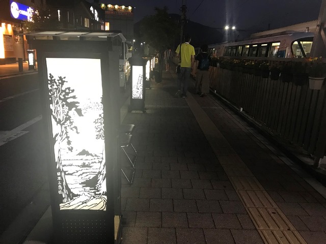 富士急行横歩道・濱野屋北側市道は19:00より行燈に明かりが灯され、情緒あるあんどん街道となります。風流な光景をお楽しみください。一基一基の行燈を見るのも楽しいですよ(^^)