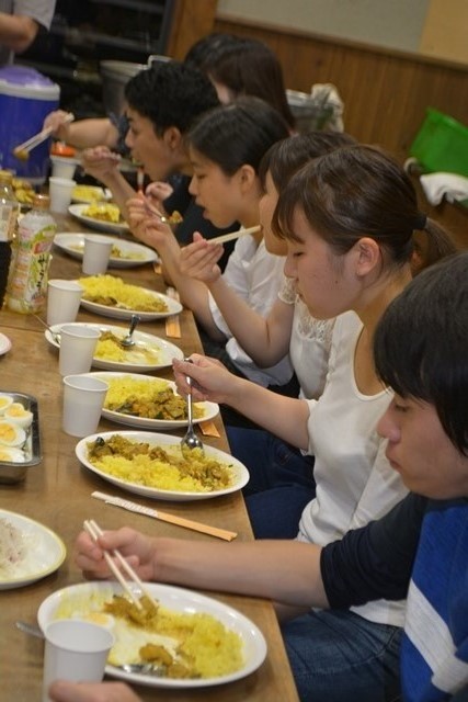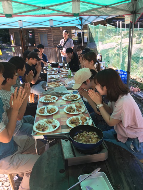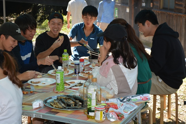 その後、宮谷にある「桂川ウェルネスパーク」に移動。高台にあるこの公園は晴れている日には正面に富士山を見ることが出来ます。この日はバーベキューゾーンにテントを張り、さとやま体験棟で調理をしました。