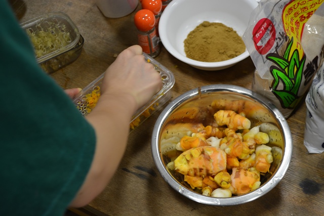 今夜のメニューは、大月産のウコンを使った「フレッシュターメリックチキンカレー」
