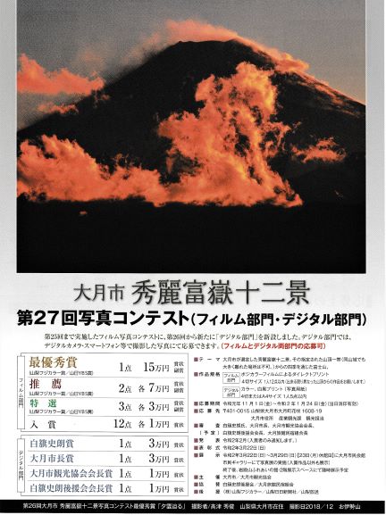 第27回大月市秀麗富嶽十二景写真コンテストのお知らせ
