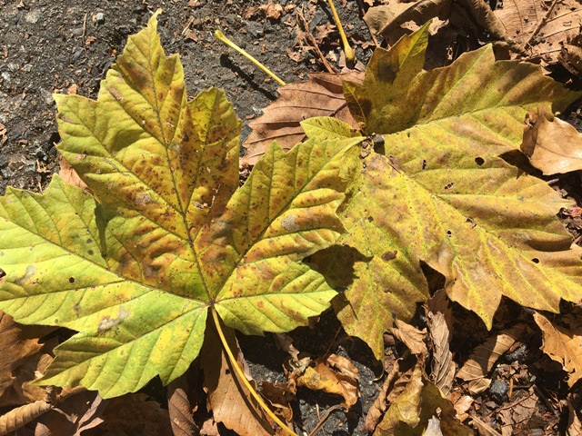 もみじは表面のみ色づき始め。例年より遅れている。また気候の影響か今年は茶色っぽい色が目立つ。