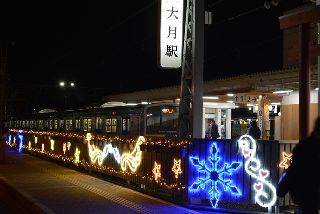 今年も富士山の北の玄関口、大月駅では大きな富士山のイルミネーションで皆さんをお迎えいたします。