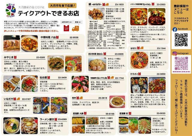 それぞれのお店が、テイクアウトメニューを提供して下さっています。