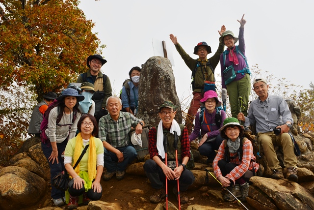 夜中には雨が降っていましたが11月3日(火)夜明けと同時にお天気も回復して、予定通りイベントが決行されました。高川山~むすび山への縦走登山、お二方の登山ガイドさんと一緒に総勢13名、長い長い登山の始まりです(^^♪_1604546851.jpg)