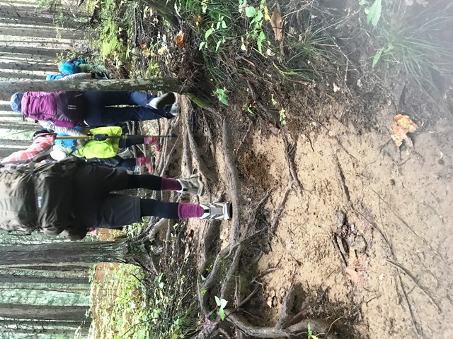 今日は雨上がりの為、登山道が泥濘大変滑りやすい状況…ガイドさんの指導の下、登山を進めました。