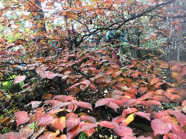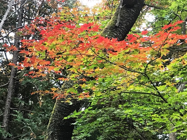雨上がりの登山道は、予想以上に足場が悪く大変でしたが、ケガもなく全員無事に約6時間30分の全工程を終了することが出来ました。富士山は望めませんでしたが、紅葉を満喫でき、また何より、山のスペシャリストのガイドさんと一緒に山歩きが出来たこと、とても貴重な体験が出来ました。