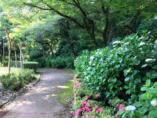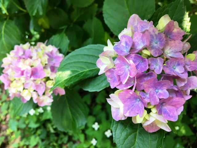 その一方で、公園まわりの遊歩道に沿って咲いているアジサイはだいぶ色もついて、楽しめるようになってきていました。