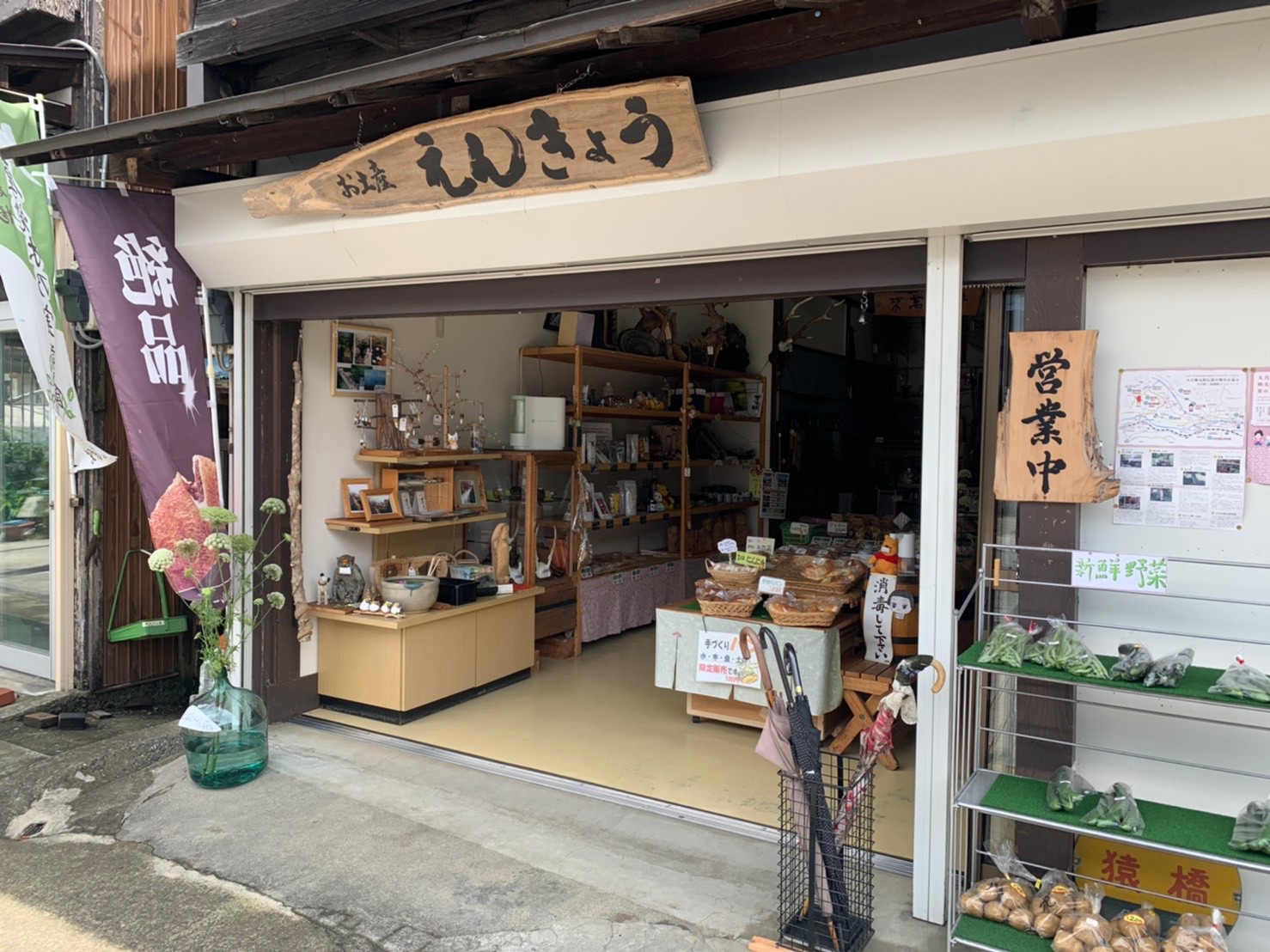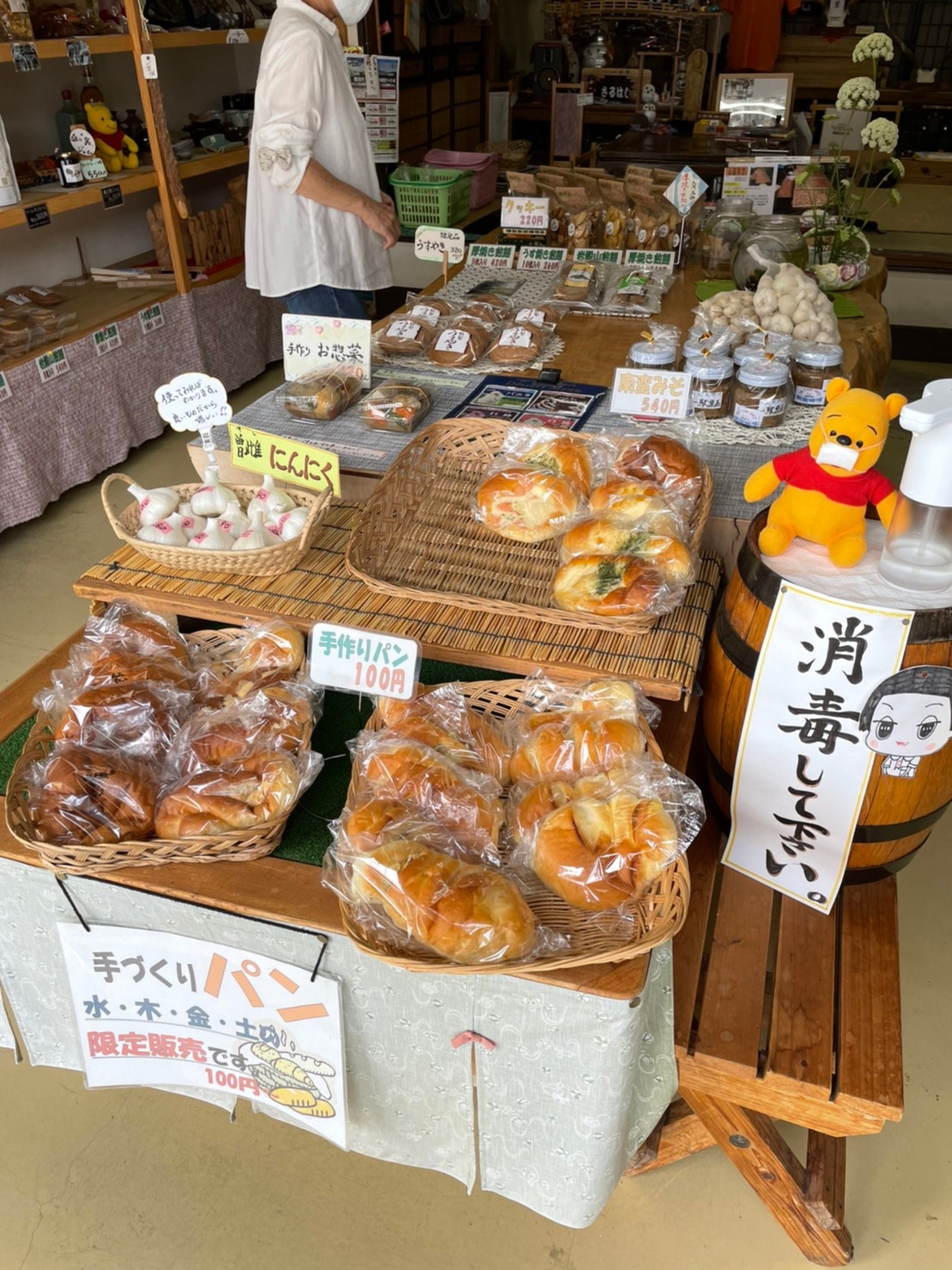 えんきょうさんにはお土産以外にも、パンやせんべい、お野菜なども置いてあったのでアジサイ見物の帰りに立ち寄ってみては?とのこと。(パンは水木金土の限定販売だそうです)