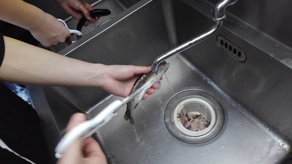 釣りの後は釣った魚の下処理をしました。希望者は魚の下処理をすることができ、自分が釣った魚を自分で捌いて食べるという貴重な体験をしました。